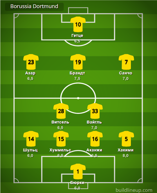 Азар, 79 – Бираги, 1, Шкриниар, 30, Кандрева, 48Боруссия Д: Бюрки – Шульц, Хуммельс, Аканжи, Хакими – Витсель, Вайгль – Азар (Геррейру, 89), Брандт, Санчо (Пищек, 82) – Гетце (Алькасер, 64).Запасные: Ельшлягель, Загаду, Дилейни, Дауд.